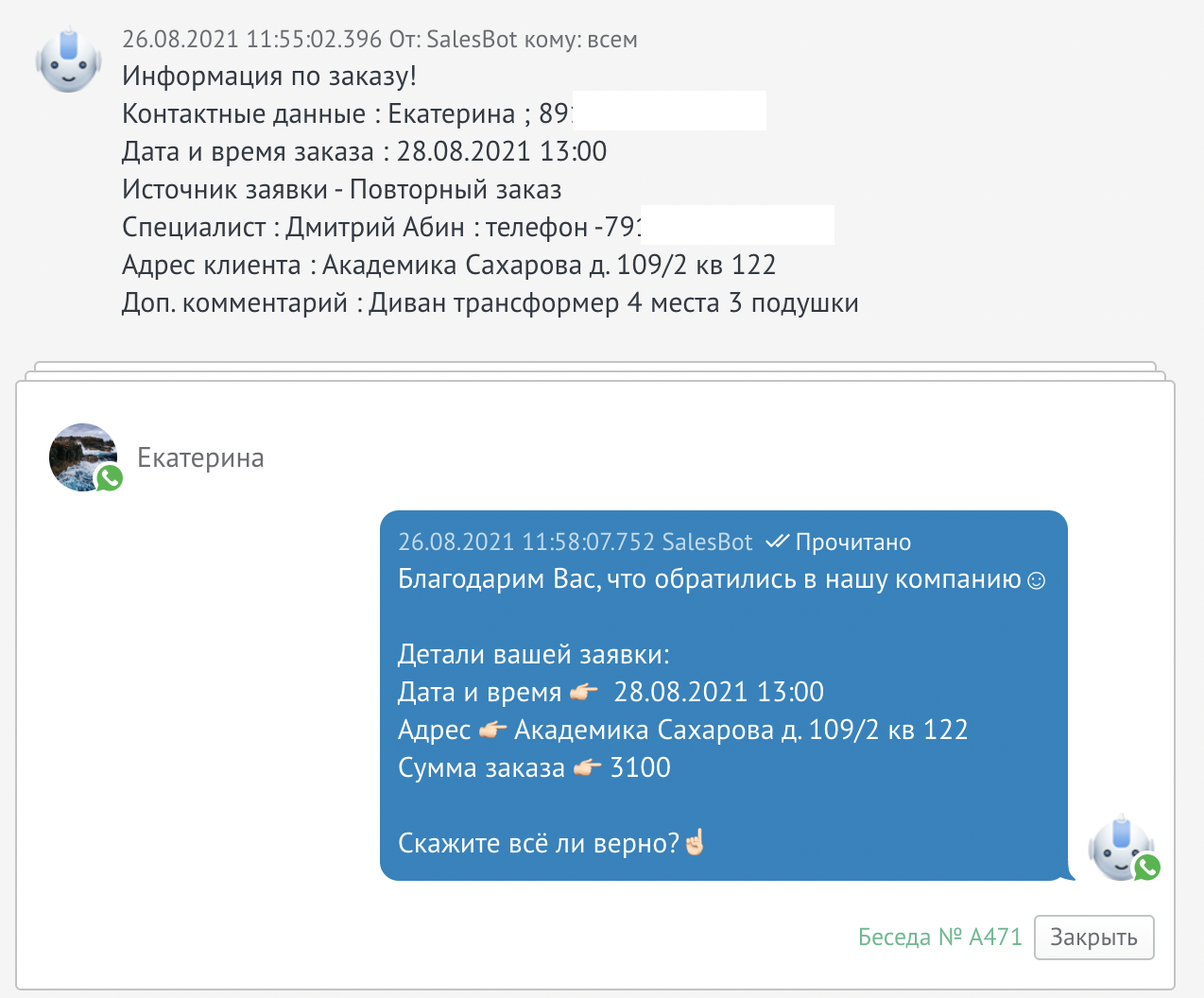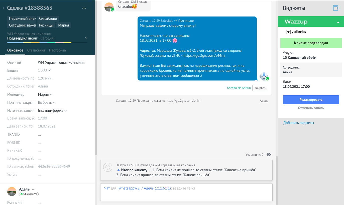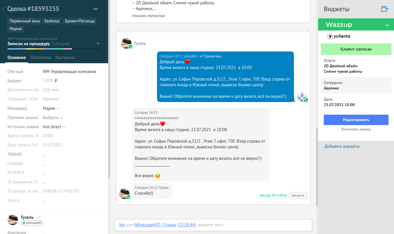 - Настроены автоматические оповещения для клиентов и сотрудников