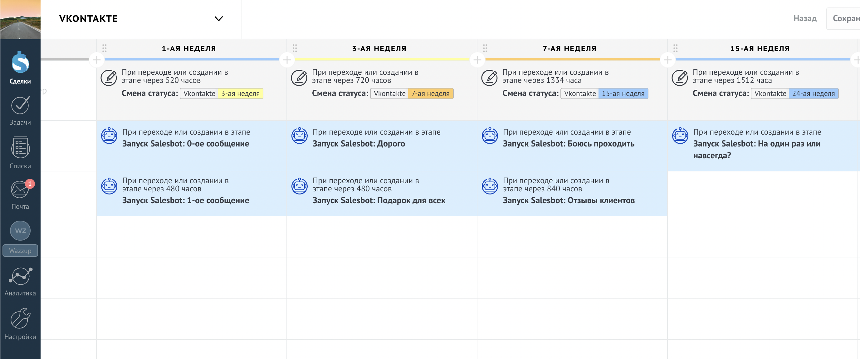 - Настройка авто-воронок для прогрева клиентов