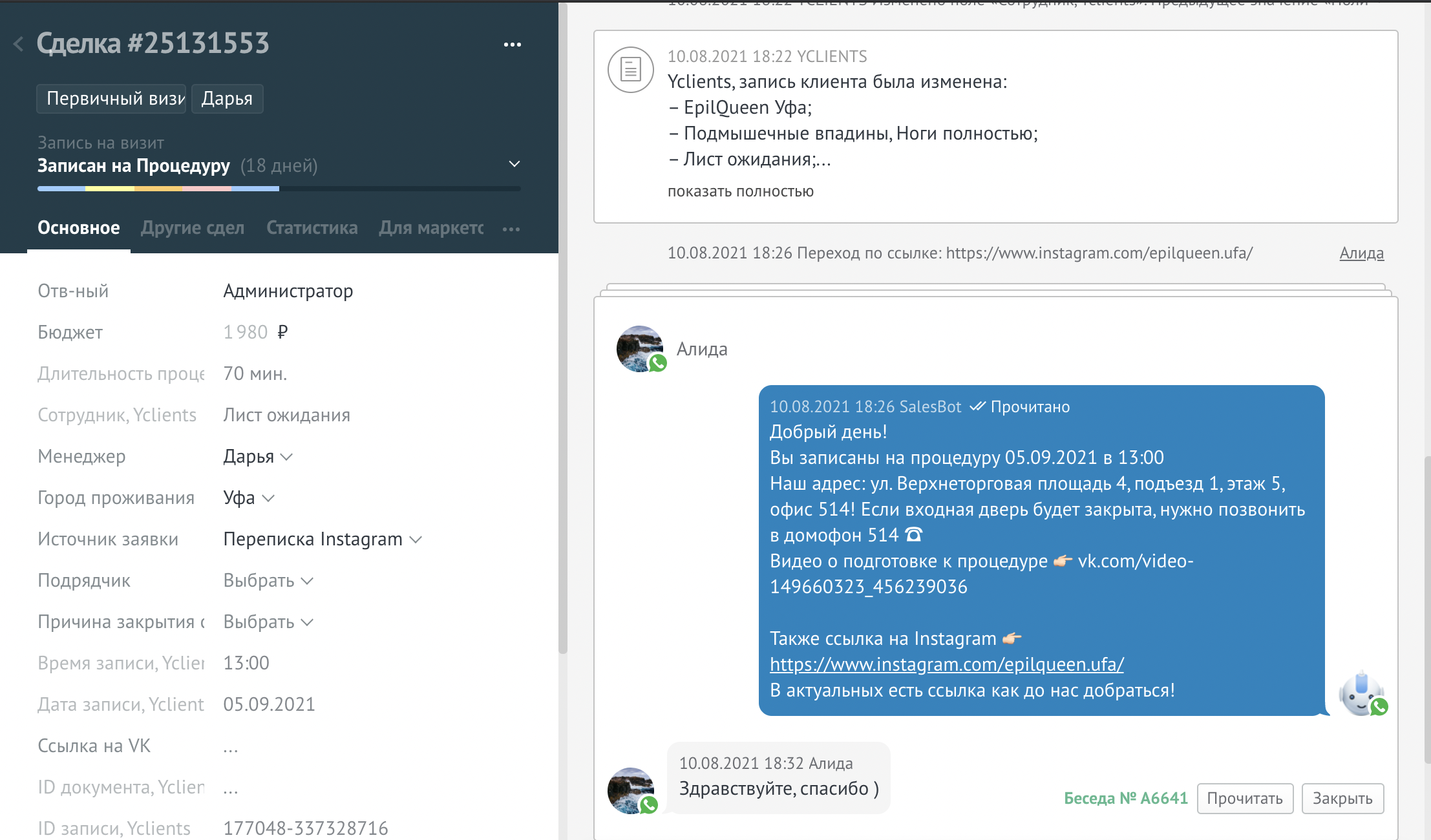 - Теперь все заявки с разных источников попадают в AmoCrm и даже администратор понимает откуда идет трафик